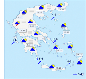 μεσημεριανές-απογευματινές ώρες. Κατά τα άλλα, θα επικρατήσουν Ν-ΝΔ άνεμοι με